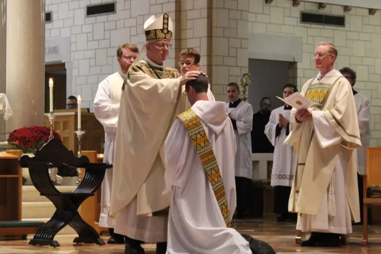 Celebrant Bishop Francis I. Malone of the Diocese of Shreveport ordained Brother Raban Heyer, OSB, a priest, calling it “a rare occurrence.”